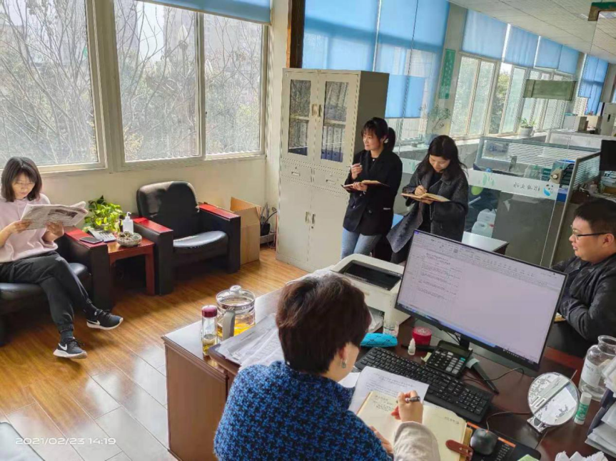 為了提高部門員工的綜合辦文、辦事能力,同時(shí)將時(shí)事有效的與辦公室工作相結(jié)合,開建綜合辦利用每日午休時(shí)間積極開展班前學(xué)習(xí)。 春節(jié)假期后的第二天起,綜合辦全體同志每日2:10準(zhǔn)時(shí)在辦公室集合,利用班前20分鐘學(xué)習(xí)《人民日?qǐng)?bào)》《求是》《雅安日?qǐng)?bào)》《政府工作通報(bào)》等報(bào)刊和內(nèi)部讀物。部門員工輪流當(dāng)老師,分別勾選出自己認(rèn)為具有學(xué)習(xí)價(jià)值的報(bào)道或公文,為部門同事認(rèn)真進(jìn)行解讀,其余同事跟讀學(xué)習(xí)。 聚沙成塔,積水成淵。綜合辦的同志們相信,只要能堅(jiān)持不懈地學(xué)...