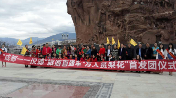 3月10日在成都新南門旅游集散中心和漢源揚帆起航廣場舉行了“成都—漢源”直通車“萬人賞梨花”首發(fā)團儀式。漢源縣副縣長龔榮高、縣旅游局局長李毅、成都旅游集散中心旅游營運部主任許蜀錦、成都天府旅行社和雅安文旅公司相關負責人出席了首發(fā)團儀式。