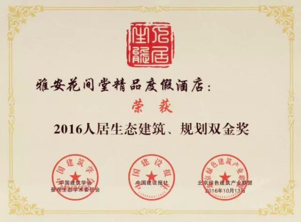 雅安花間堂精品度假酒店項目設(shè)計方案榮獲國內(nèi)地產(chǎn)界“諾貝爾獎”