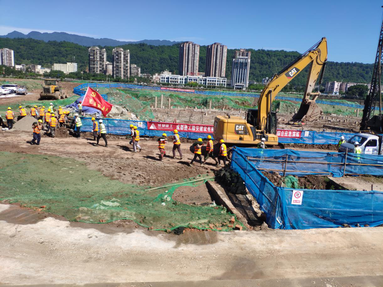 本次演練分為疏散保衛(wèi)組、醫(yī)療救治組、物資保障組、應(yīng)急救援組和信息發(fā)布組五個(gè)防洪防汛應(yīng)急演練組。現(xiàn)場模擬演練周公堰河水因連續(xù)暴雨導(dǎo)致河水上漲,漫過堰堤,雅安熊貓會(huì)展博覽館基坑作業(yè)面大量進(jìn)水,項(xiàng)目安全負(fù)責(zé)人確認(rèn)險(xiǎn)情后,立即啟動(dòng)防汛應(yīng)急預(yù)案。
