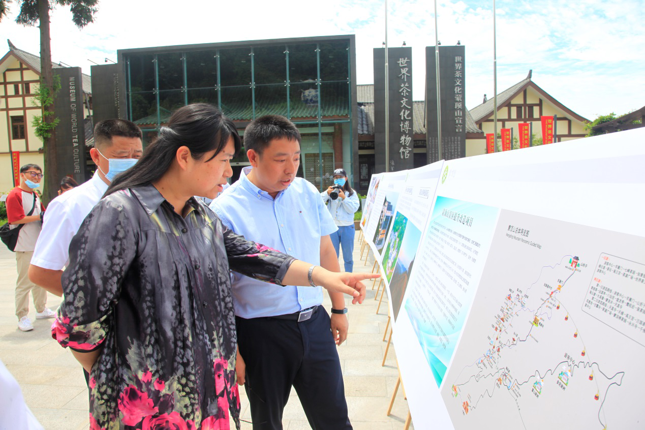 調(diào)研組一行首先聽取蒙頂山景區(qū)提升改造項目的整體整體規(guī)劃和項目推進情況。隨后,調(diào)研組一行調(diào)研了蒙頂山景區(qū)“天壺”、“云上”觀景平臺、世界茶文化博物館、茶文化浮雕墻、“天下第一壺”、龍行十八式雕塑等點位。