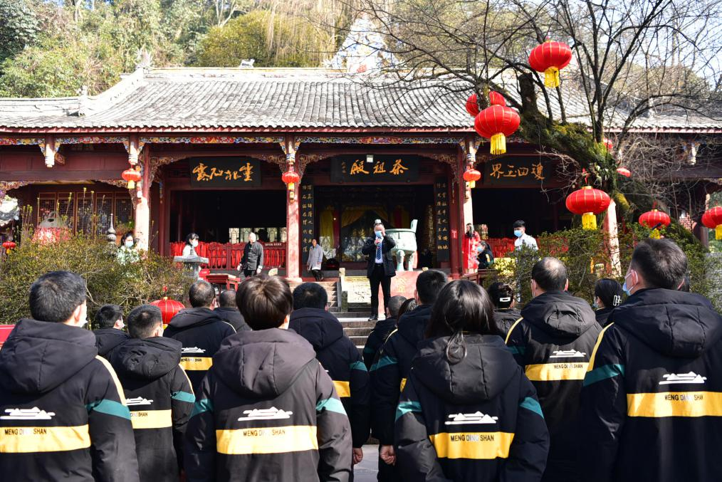 三、推廣民俗,傳統(tǒng)文化添氛圍。正月初一,為感恩茶祖吳理真為人類做的貢獻,蒙頂山景區(qū)舉行了開年第一場“拜茶祖·祈大?!辈枳婕腊輧x式,誦讀祭文,敬拜茶祖,行作揖禮,敬獻蒙頂皇茶,去掉昔日進香的流程,蒙頂山景區(qū)也將此次的“茶祖祭拜”儀式感做到十足,令不少游客為之駐足。為營造節(jié)日氛圍,蒙頂山花間堂·茶馬司酒店還開展了新年剪紙等傳統(tǒng)非遺活動,以及古風發(fā)簪制作、陶罐涂色、毛氈掛件制作活動,受到入住游客的歡迎。