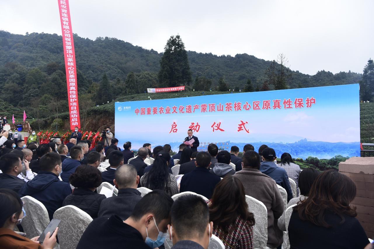 2021年11月1日下午3點(diǎn),“中國(guó)重要農(nóng)業(yè)文化遺產(chǎn)蒙頂山茶核心區(qū)原真性保護(hù)啟動(dòng)儀式”在蒙頂山凌云臺(tái)玻璃棧道隆重舉行。