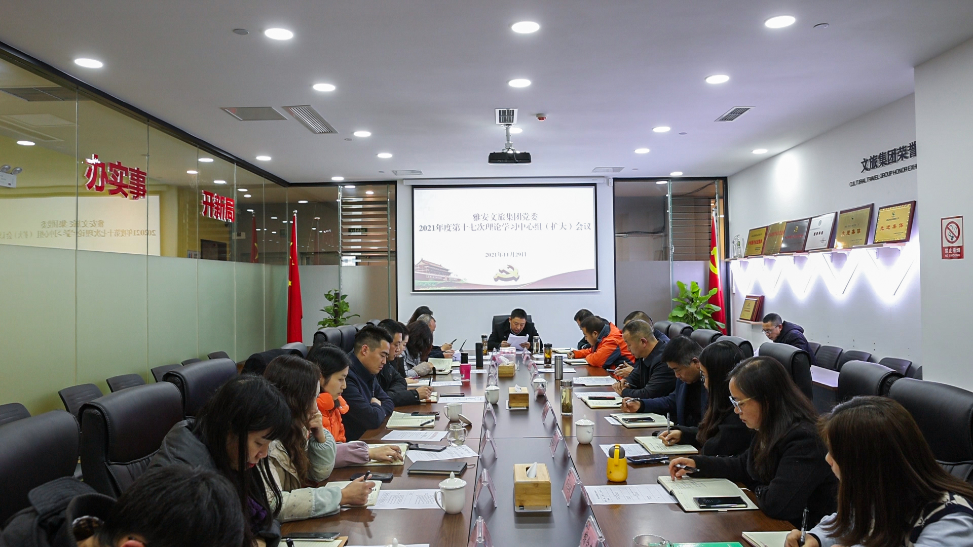 2021年11月29日,雅安文旅集團黨委組織召開2021年度第十七次理論學(xué)習(xí)中心組(擴大)會議,集團黨委書記、董事長肖永昌同志主持會議,專題傳達學(xué)習(xí)貫徹全省國資系統(tǒng)國有企業(yè)黨的建設(shè)工作座談推進會會議精神。