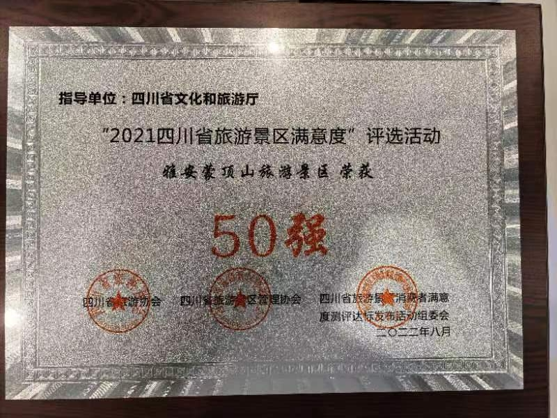 蒙頂山景區(qū)榮獲 “2021四川省旅游景區(qū)滿意度”50強(qiáng)