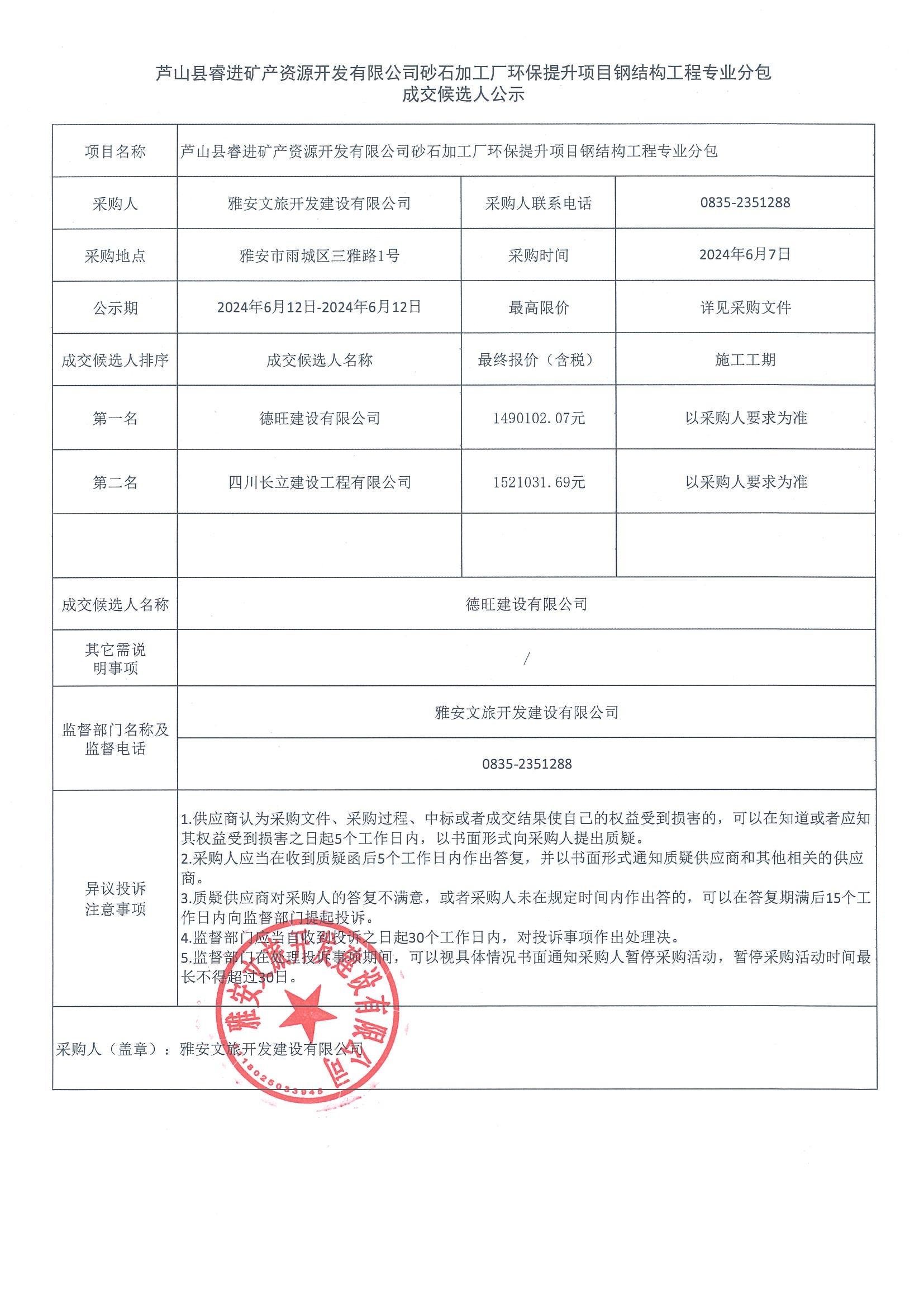 成交候選人公示